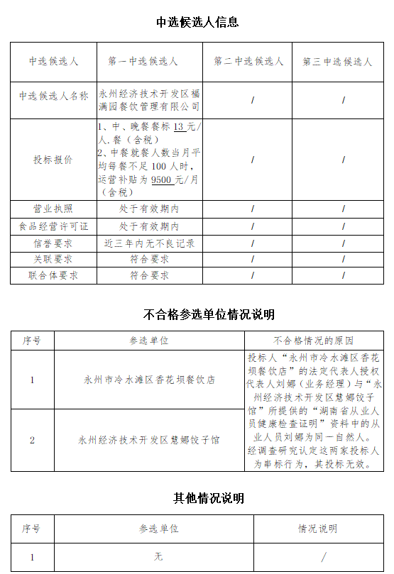 湖南長(zhǎng)豐獵豹汽車有限公司員工食堂對(duì)外承包經(jīng)營(yíng)項(xiàng)目(第二次)于2025年9月24日湖南省永州市冷水灘區(qū)長(zhǎng)豐集團(tuán)辦公樓二樓評(píng)標(biāo)室、評(píng)標(biāo)活動(dòng),評(píng)標(biāo)委員會(huì)按照比選文件及相關(guān)法律法規(guī)規(guī)定進(jìn)行評(píng)審,推薦以下中選候選人,現(xiàn)將相關(guān)信息予以公示。